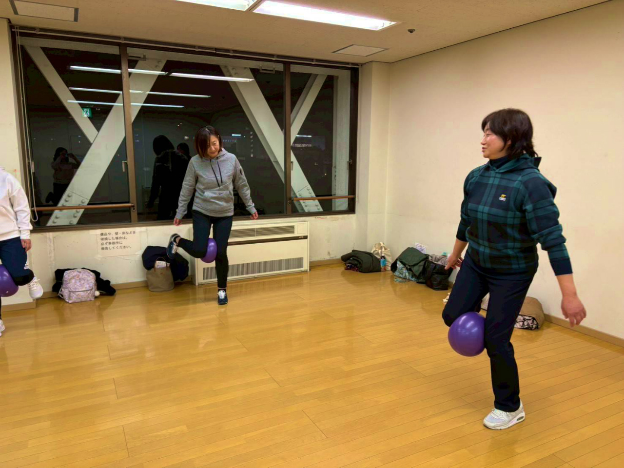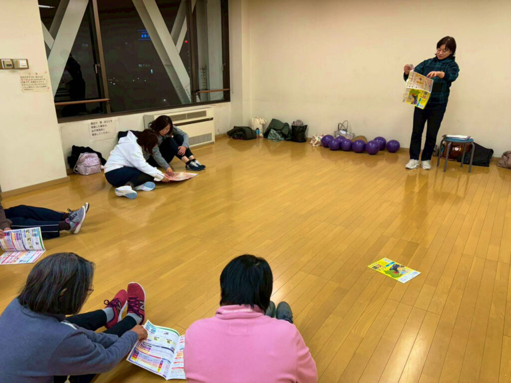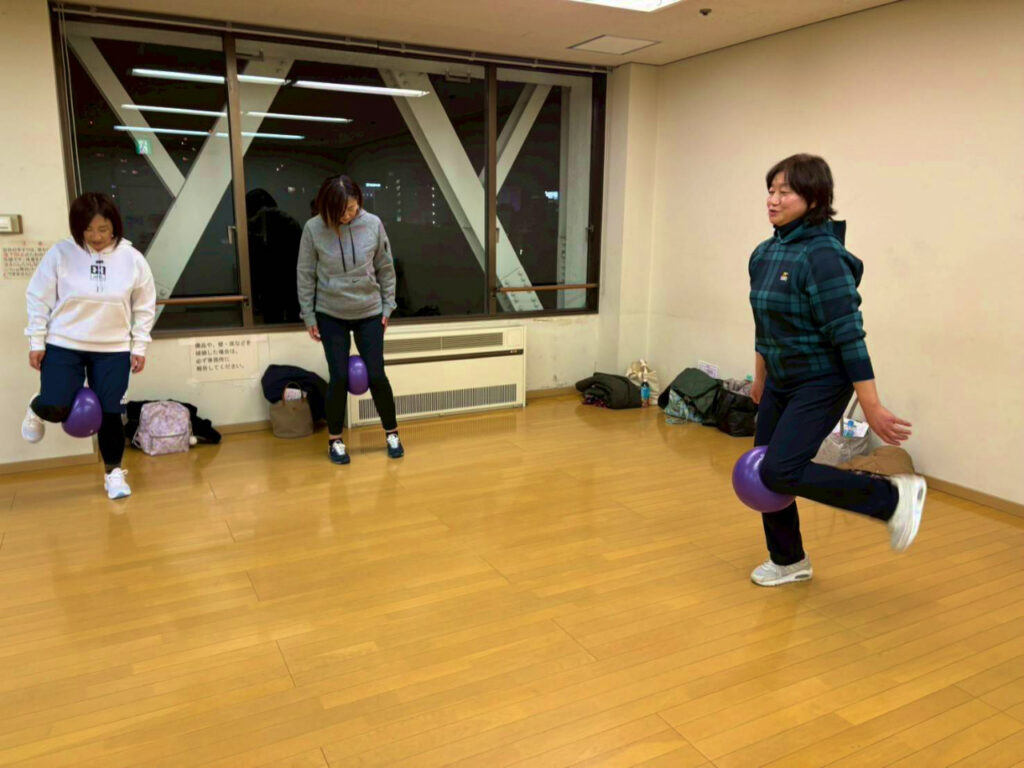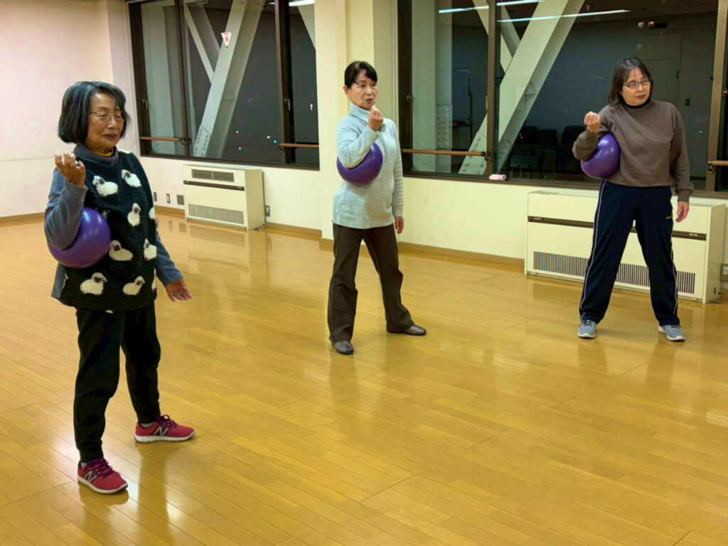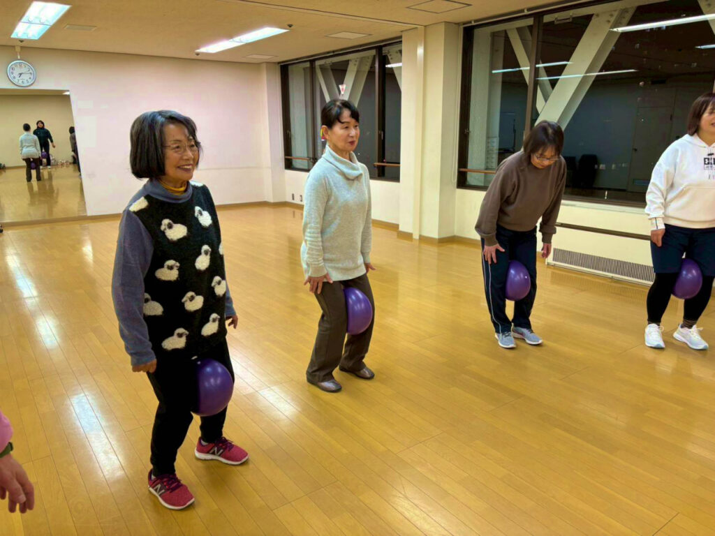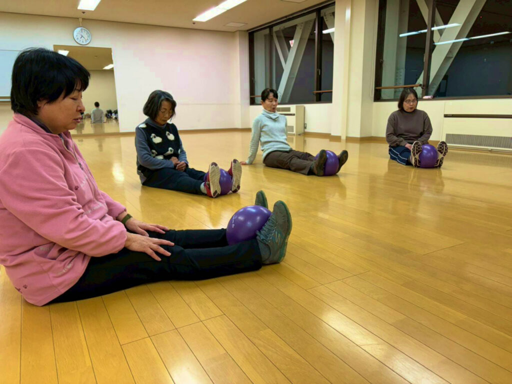 内容はボールを使用した筋トレなどで、参加者の皆さんがゲーム感覚で楽しい体操をすることが出来ました。